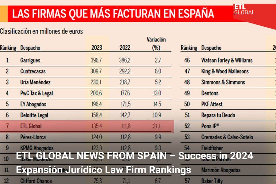 ETL GLOBAL is proud to announce that its Spanish arm has again secured a place among the top 10 largest legal service providers in the country, according to the recently published 2024 Expansión Jurídico law firm rankings.
